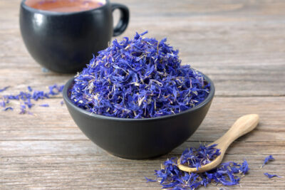 Blue Cornflower is widely grown and cultivated in Germany, where the whole plant is harvested and dried. The bright blue color of the cornflower is preserved by the whole plant once it blossoms.