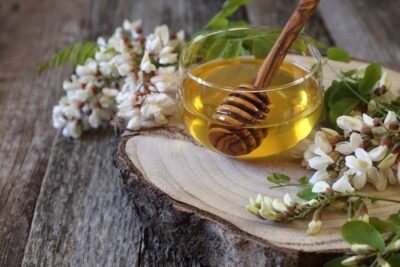 Acacia honey, also known as locust honey, is derived from the nectar of the Robinia pseudoacacia flower. It has a light, almost transparent color and stays liquid for longer, prolonging its shelf life.